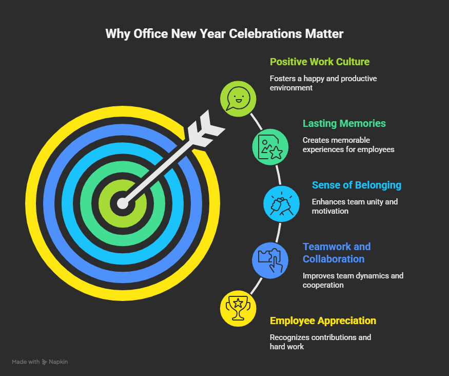 A well-planned office celebration does more than just bring smiles for a day. It can create a lasting positive effect on employees, workplace culture, and overall productivity. Here’s how office new year celebrations can make a real difference: